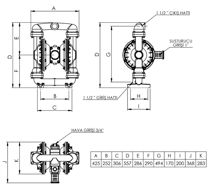 Производительность: 400л/мин Вход/выход: 11/2 Материал корпуса : Алюминий, чугун, литая нержавеющая Материал диафрагмы: Сантопрен Неопрен Тефлон Витон Материал шариковых клапанов Сантопрен Неопрен Тефлон Витон Материал седла шариковых клапанов Сантопрен Неопрен Тефлон Витон Подключение воздуха: 3/4 Размер перекачиваемых частиц : 6м Глубина всасывания: 6м Рабочее давление: 7бар Напор: 70м. |